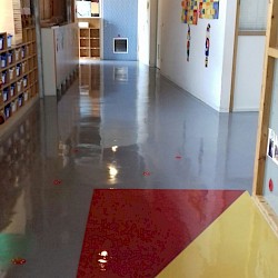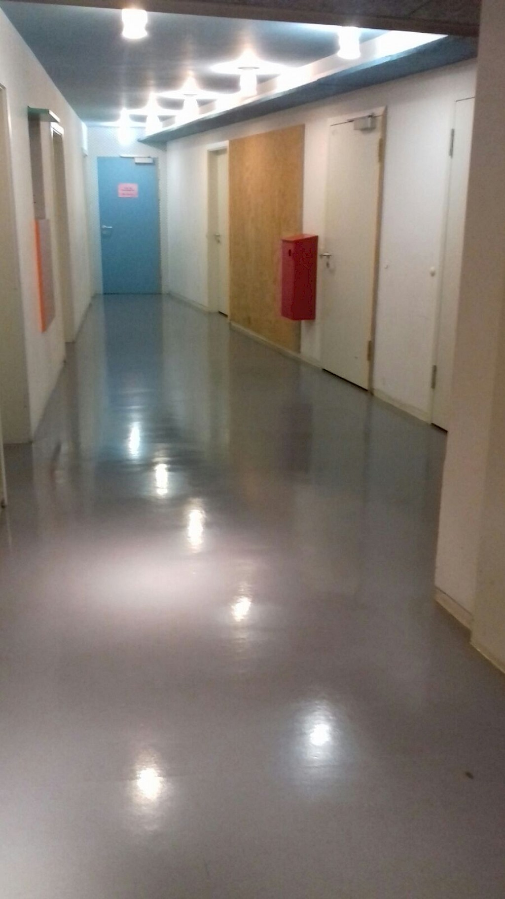 Bei der Grundreinigung vom Linoleum werden alte Beschichtungen, Wachse, Pflegemittelreste und Verschmutzung maschinell mit speziellen Grundreinigungsmitteln und abrasiver Mechanik entfernt. Die Grundreinigung wird in mehreren Arbeitsschritten durchgeführt. Nach der Grundreinigung wird das Linoleum maschinell neutralisiert, der Grundreiniger wird vollständig entfernt. Nach einer ausreichenden Trocknungszeit wird der Bodenbelag in mehreren Schichten mit einer glänzenden oder matten Beschichtung versehen.